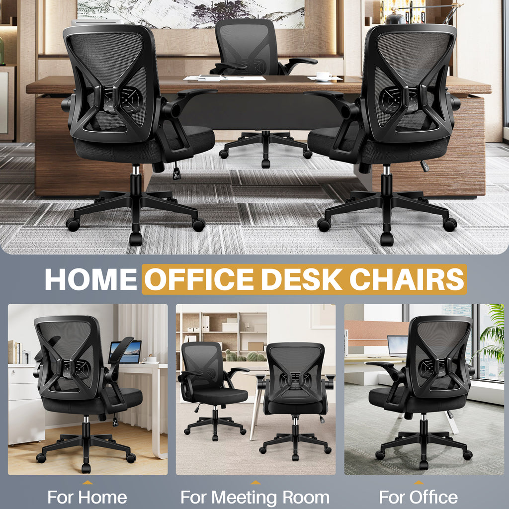 FelixKing Office Chair - Ergonomic Desk Chair Breathable Mesh Task with Wheels and Lumbar Support Home Desk Office Chairs with Flip up Armrest Rolling Swivel for Home Computer Black